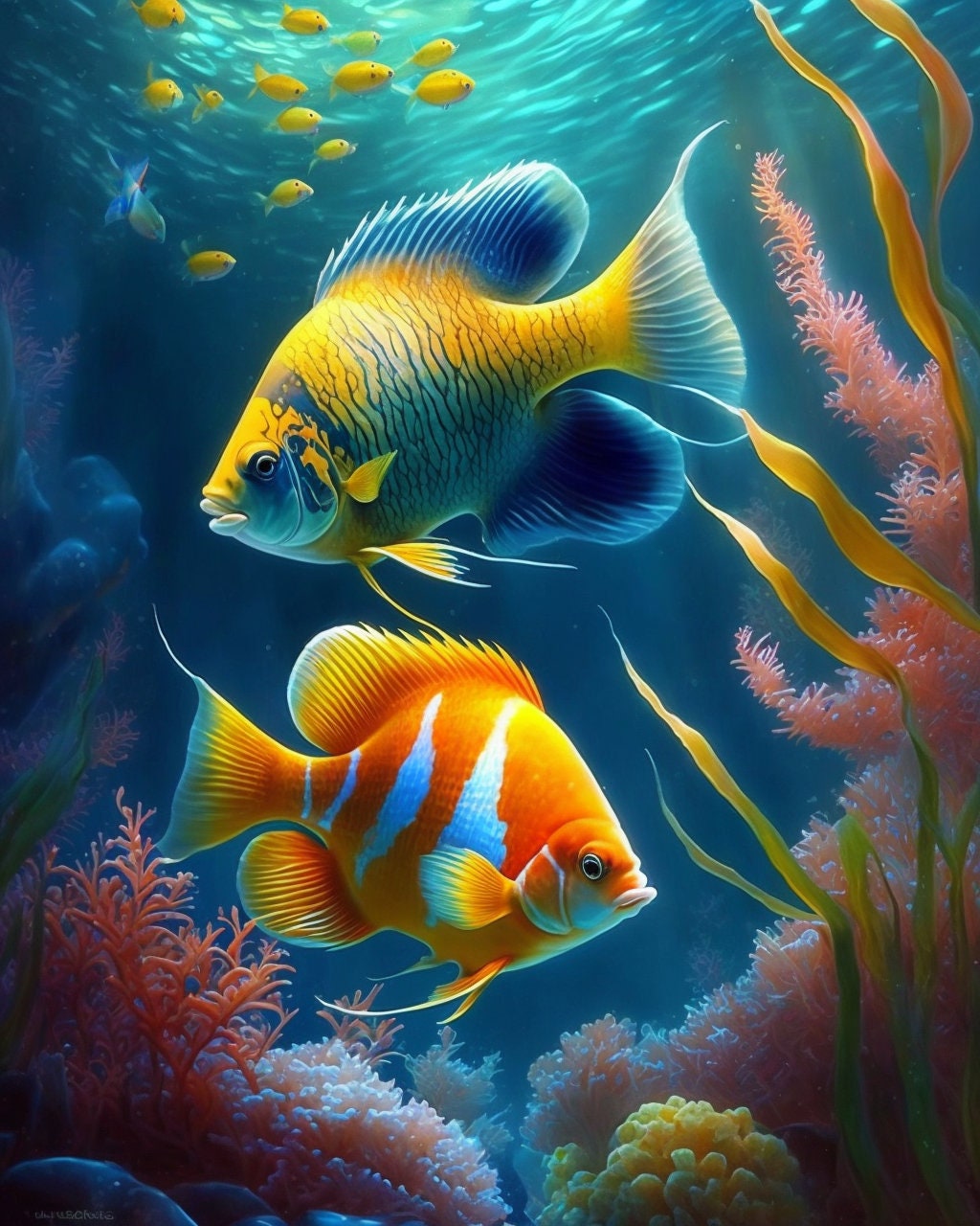 Underwater Wall Art Sea Aquarium Painting Water Picture Home Decoration For Living Room Bedroom Framed Ready To Hang Walmart Com